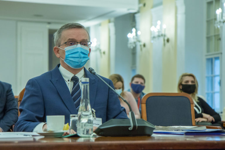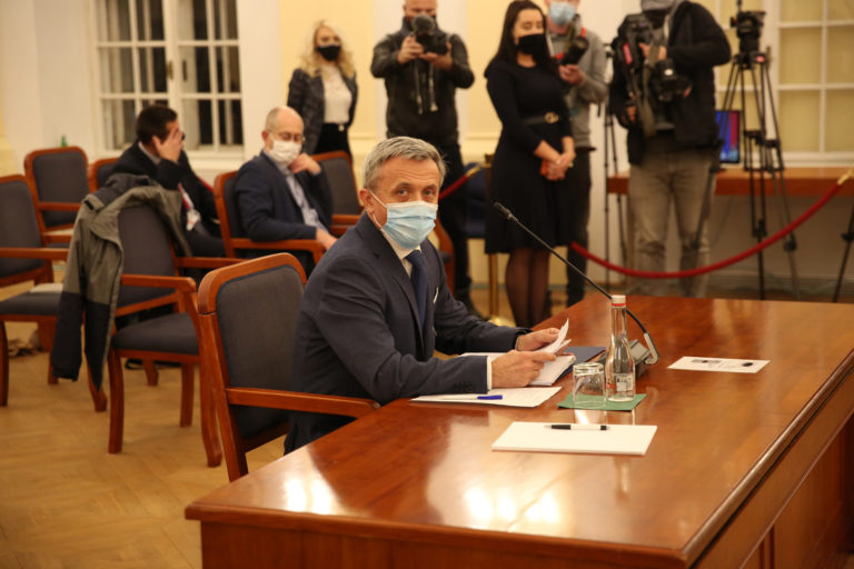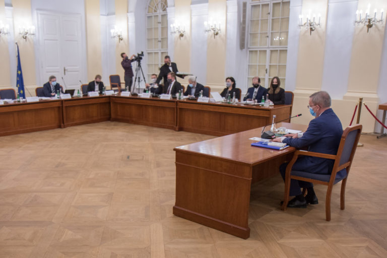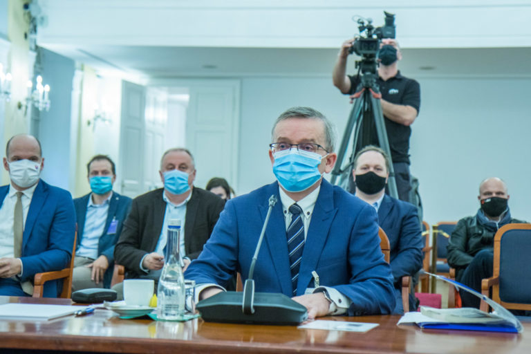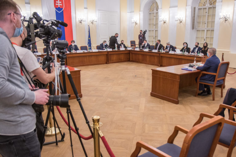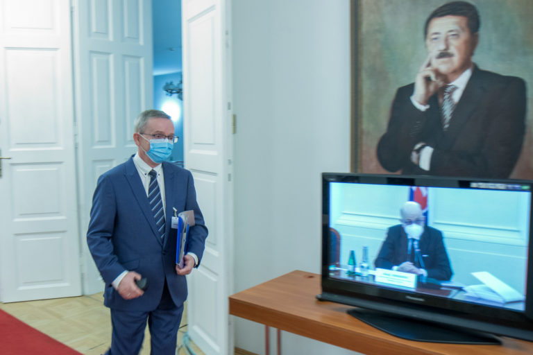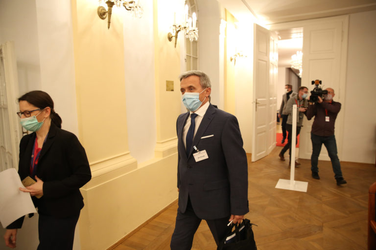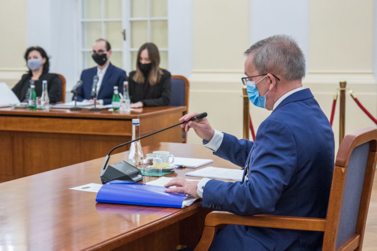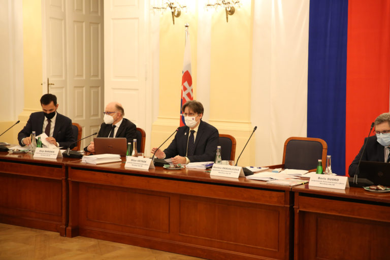Kandidát na generálneho prokurátora Jozef Čentéš (uprostred) počas vypočutia kandidátov na generálneho prokurátora SR v rámci schôdze Ústavnoprávneho výboru NR SR. Bratislava, 19. november 2020. Foto: SITA/Ľudovít Vaniher