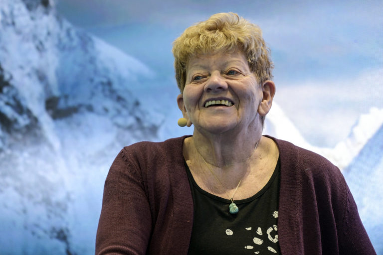 Horolezkyňa Dina Šterbová, ktorá dosiahla na vrchol Mount Everestu začiatkom 90-tych rokov počas vyprevádzania slovenskej horolezkyne Lucie Janičovej na Everest v sídle Slovenskej sporiteľne v Bratislave. Bratislava, 26. marec 2024. Foto: SITA/Milan Illík.