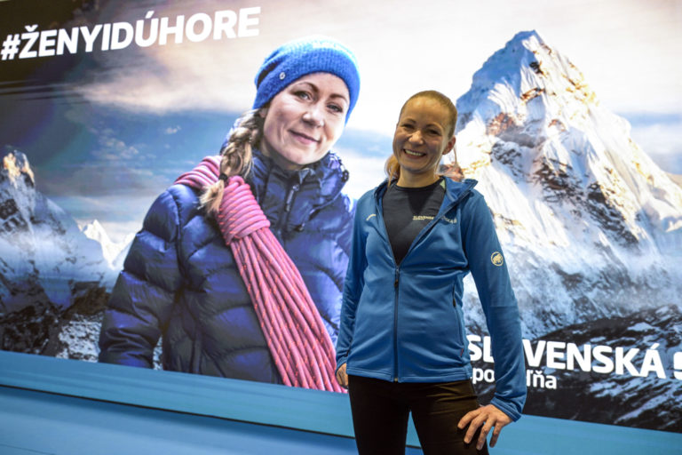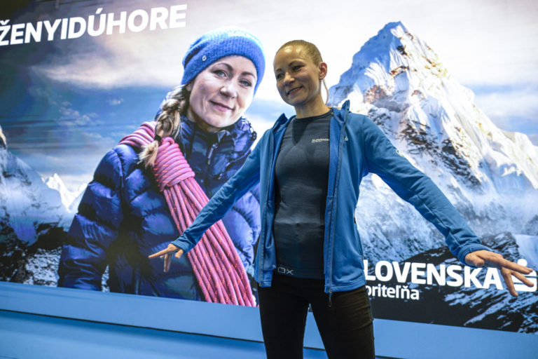Slovenská horolezkyňa a vedkyňa v oblasti imunológie Lucia Janičová počas jej vyprevádzania na Everest v sídle Slovenskej sporiteľne v Bratislave. Bratislava, 26. marec 2024. Foto: SITA/Milan Illík.
