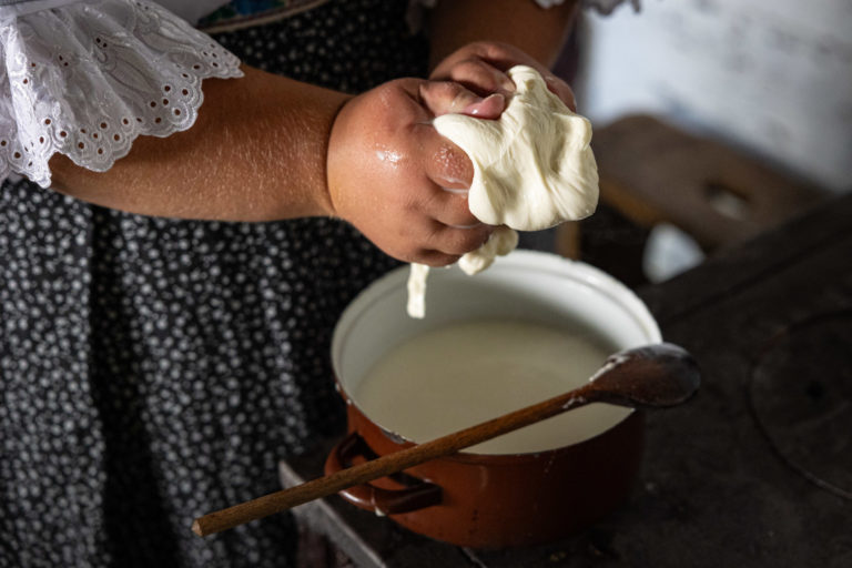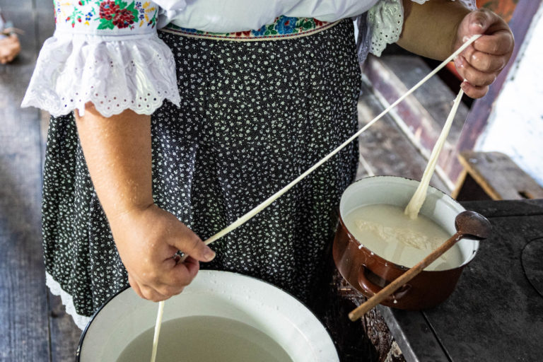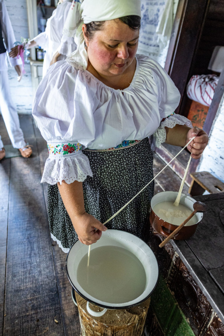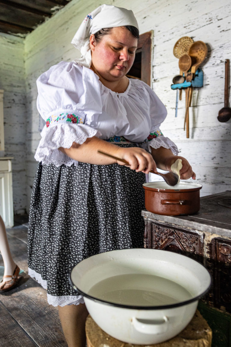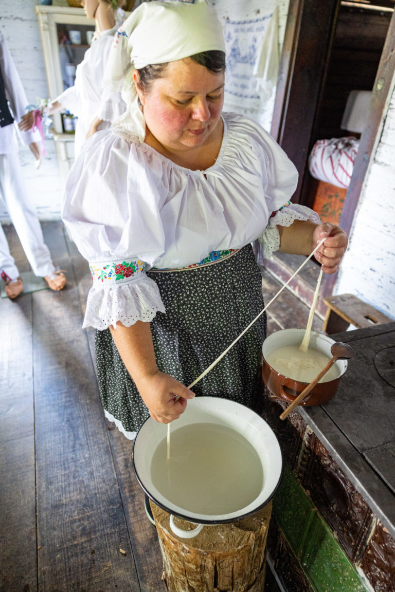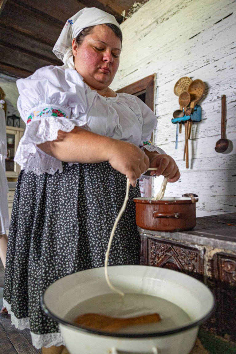 Ukážka výroby syrových nití počas podujatia Ovčiarska nedeľa, ktoré pripravilo Múzeum kysuckej dediny vo Vychylovke. Vychylovka, 21. júl 2024. Foto: SITA/Jana Birošová