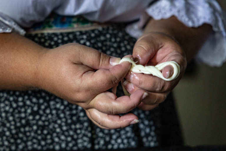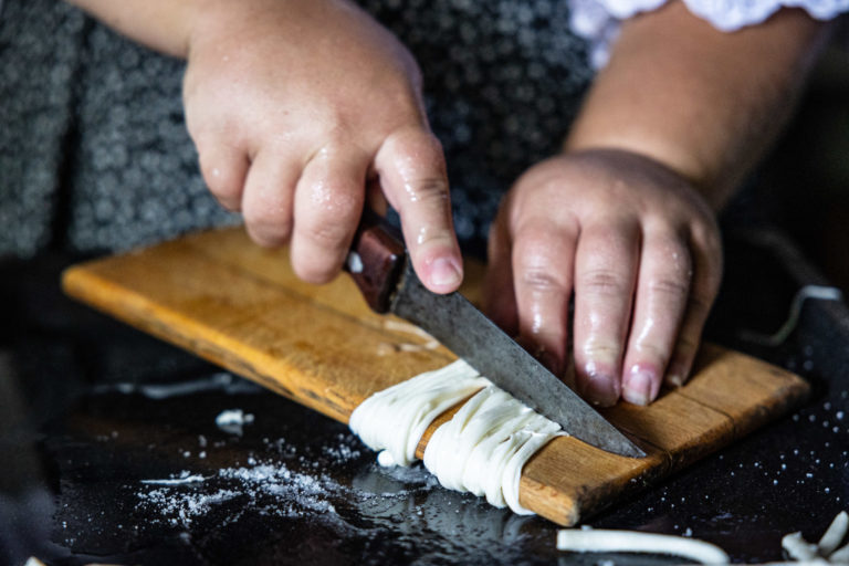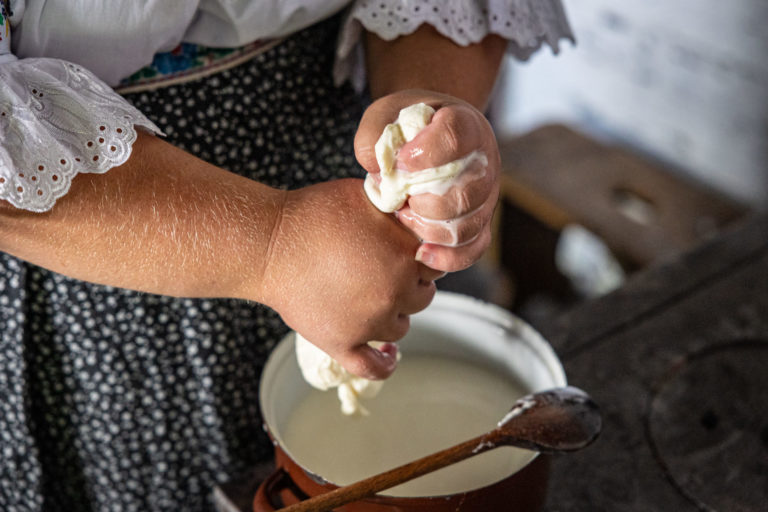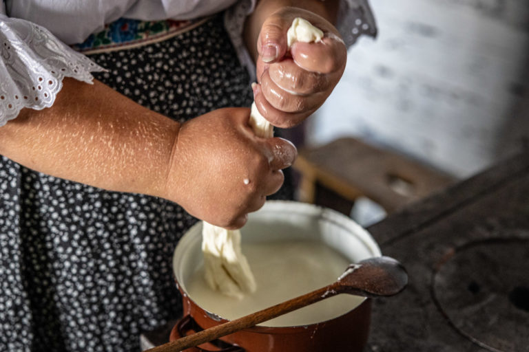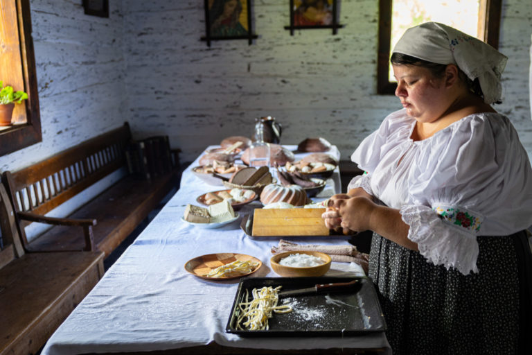 Ukážka výroby syrových korbáčikov počas podujatia Ovčiarska nedeľa, ktoré pripravilo Múzeum kysuckej dediny vo Vychylovke. Vychylovka, 21. júl 2024. Foto: SITA/Jana Birošová