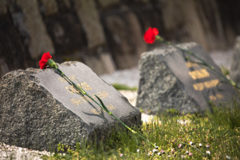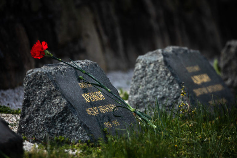 Červené karafiáty položené pri hroboch sovietskych vojakov na vojenskom pamätníku Slavín v Bratislave pri príležitosti 78. výročia oslobodenia hlavného mesta Bratislavy. Bratislava, 04. apríl 2023. Foto: SITA/Diana Černáková