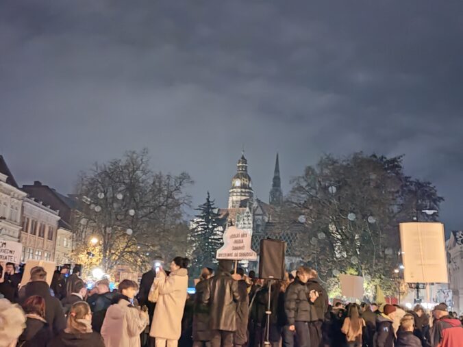Účastníci zhromaždenia pri príležitosti výročia Nežnej revolúcie na Hlavnej ulici v Košiciach. Košice, 17. november 2025 Foto: SITA/Katarína Lörincová