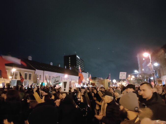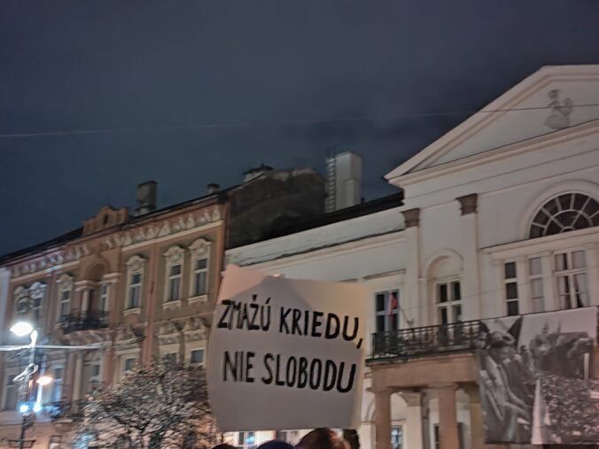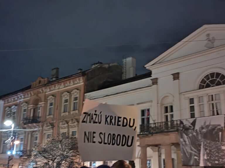 Účastníci počas zhromaždenia na Námestí slobody v Bratislave pri príležitosti výročia Nežnej revolúcie a Dňa boja za slobodu a demokraciu. Bratislava, 17. november 2025. Foto: SITA/Facebook Progresívne Slovensko
