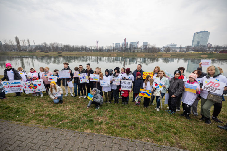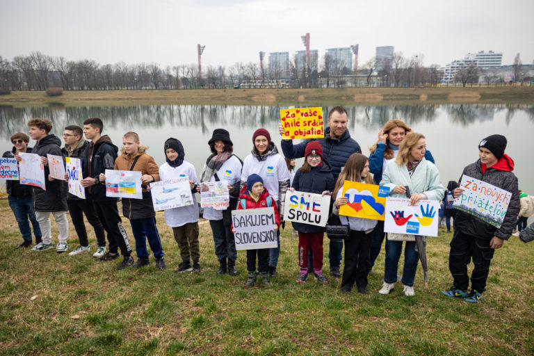 Účastníčkypo vysadení „stromu vďaky“ pri jazere Kuchajda zavŕšili série podujatí, organizovaných Iniciatívou Ďakujeme Slovensko, prostredníctvom ktorých sa ukrajinská komunita odvďačila Slovensku za prijatie a pomoc v čase núdze. Bratislava, 17. február 2024. Foto: ilustračné, SITA/Jana Birošová