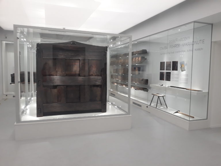 Dosky z hrobky kniežaťa vystavené v Podtatranskom múzeu. Poprad, 25. máj 2023. Foto: SITA/Mária Frisová