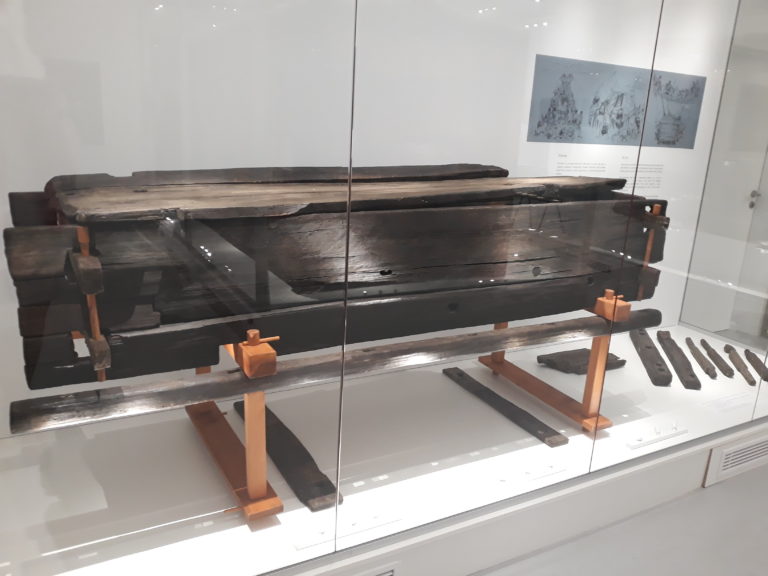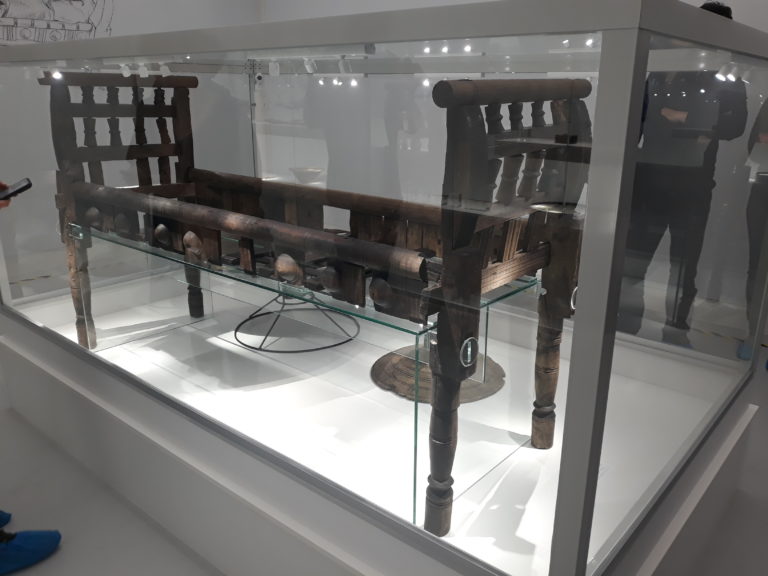 Originál lôžka z hrobky kniežaťa z Popradu vystavený v Podtatranskom múzeu. Poprad, 25. máj 2023. Foto: SITA/Mária Frisová