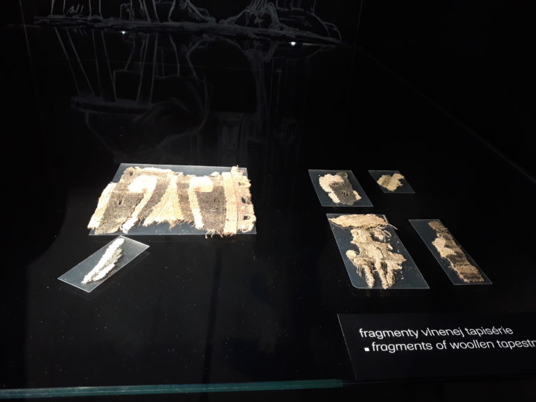Časť textílií z kniežacej hrobky vystavená v Podtatranskom múzeu. Poprad, 25. máj 2023. Foto: SITA/Mária Frisová
