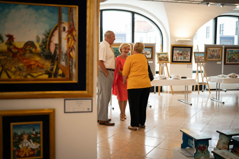 Atmosféra počas výstavy Kovačické insitné maliarstvo na Bratislavskom hrade, nad ktorou prevzala záštitu poslankyňa Národnej rady (NR) SR za stranu HLAS - sociálna demokracia Ľubica Laššáková (uprostred). Bratislava, 15. júl 2025. Foto: SITA/HLAS – sociálna demokracia