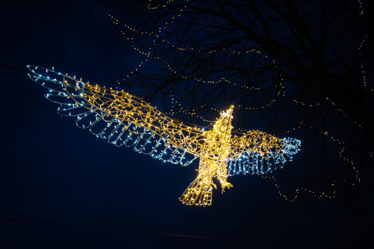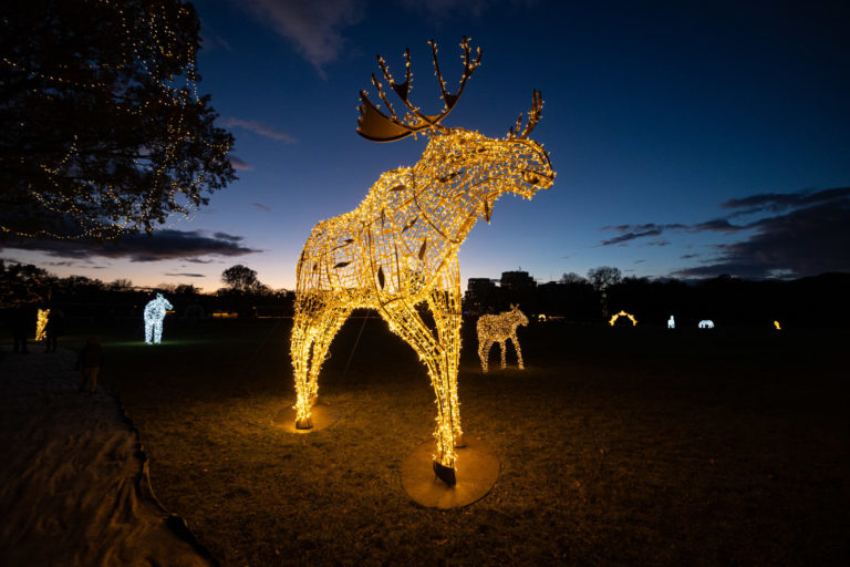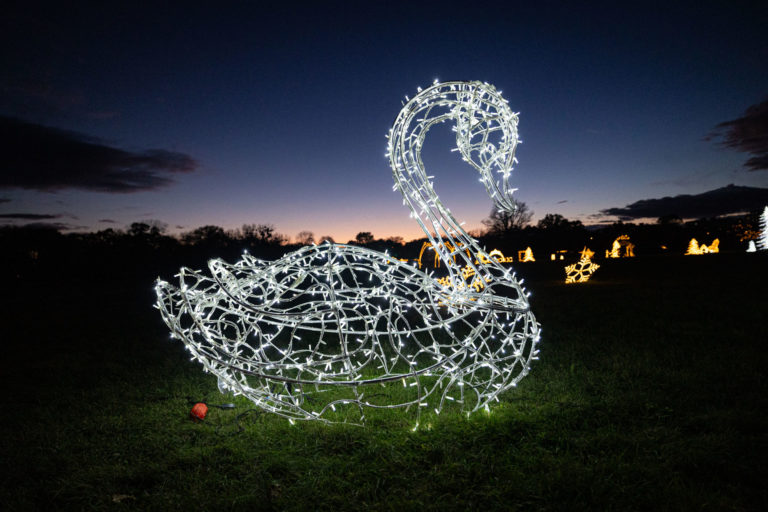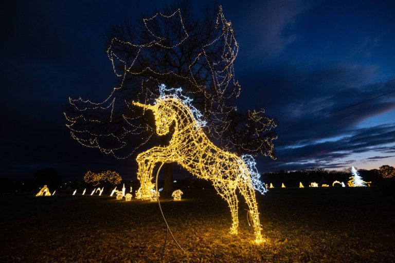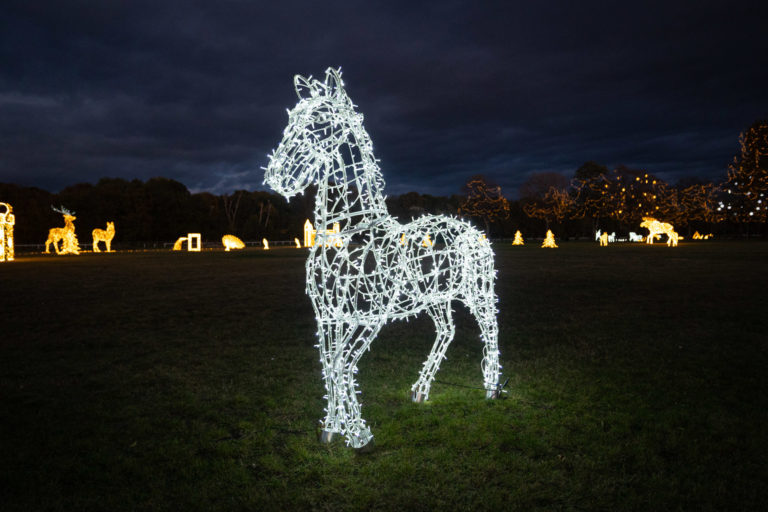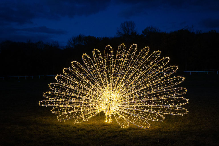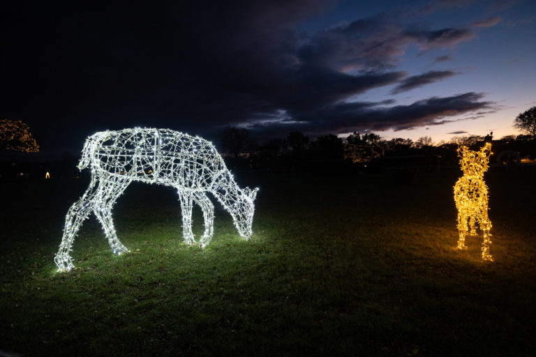 Svetelné sochy počas rozsvietenia prvého svetelného parku na dostihovej dráhe v bratislavskej Petržalke s názvom Svetlá rozprávajú. Bratislava, 15. november 2023. Foto: SITA/Jana Birošová