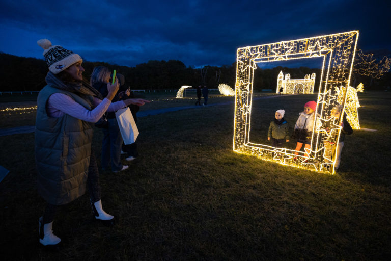 Atmosféra počas rozsvietenia prvého svetelného parku na dostihovej dráhe v bratislavskej Petržalke s názvom Svetlá rozprávajú. Bratislava, 15. november 2023. Foto: SITA/Jana Birošová