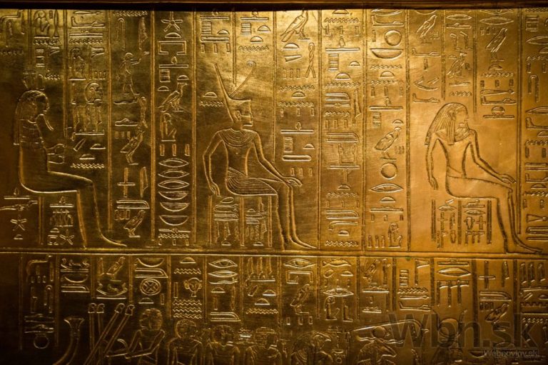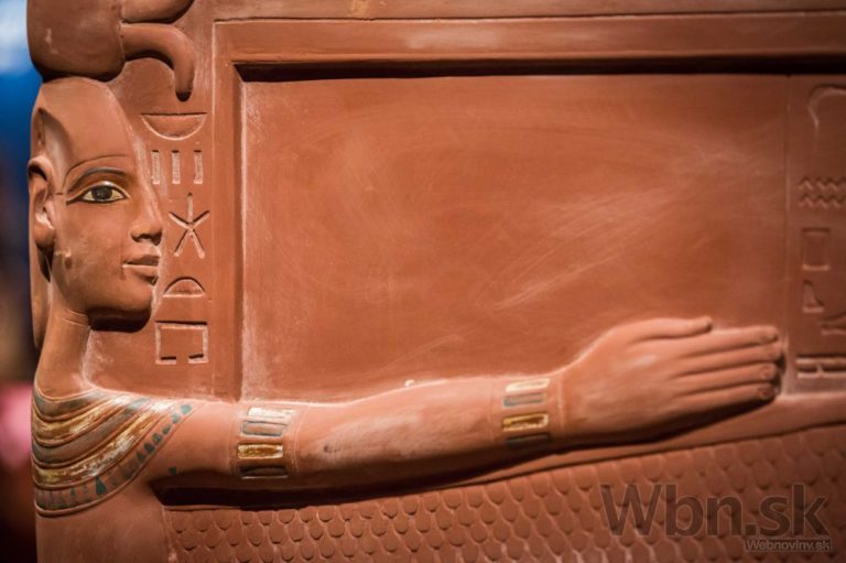 Pohľad na detail hrobky faraóna Tutanchamona počas výstavy Tutanchamon. Ide o rekonštrukciu pokladov a hrobky faraóna Tutanchamona, ktoré objavil egyptológ Howard Carter. Bratislava, 16. august 2014. Foto: SITA/Jozef Jakubčo
