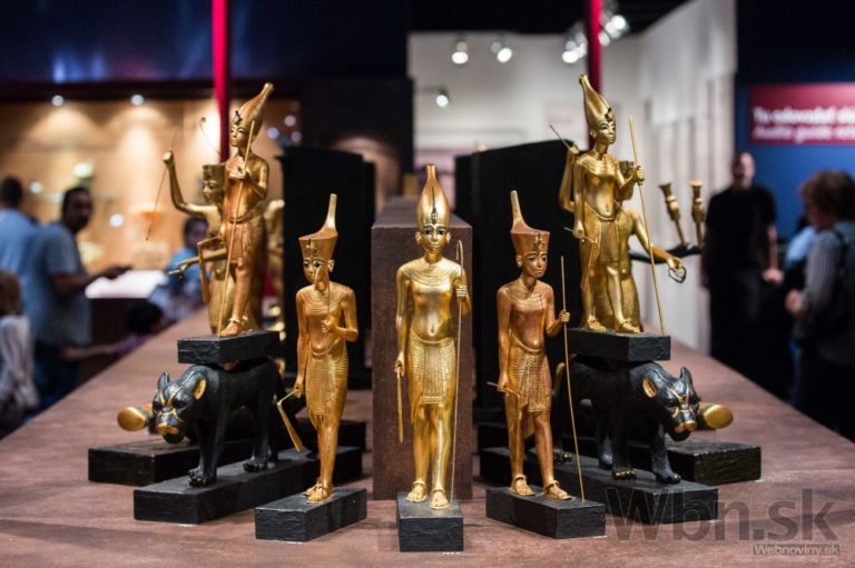 Pohľad na expozíciu výstavy Tutanchamon. Ide o rekonštrukciu pokladov a hrobky faraóna Tutanchamona, ktorú objavil egyptológ Howard Carter. Bratislava, 16. august 2014. Foto: SITA/Jozef Jakubčo