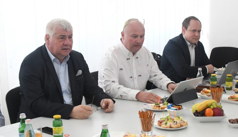 Zľava: Generálny riaditeľ NDS Ján Ďurišin, minister dopravy a výstavby Árpád Érsek a investičný riaditeľ NDS Jiří Hájek počas kontrolného dňa na stavbe D1 Prešov západ - Prešov juh za účasti zástupcov Národnej diaľničnej spoločnosti (NDS). Prešov, 14. marec 2019. Foto: SITA/Viktor Zamborský