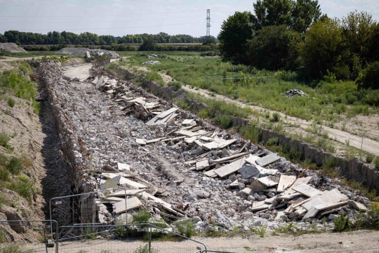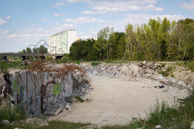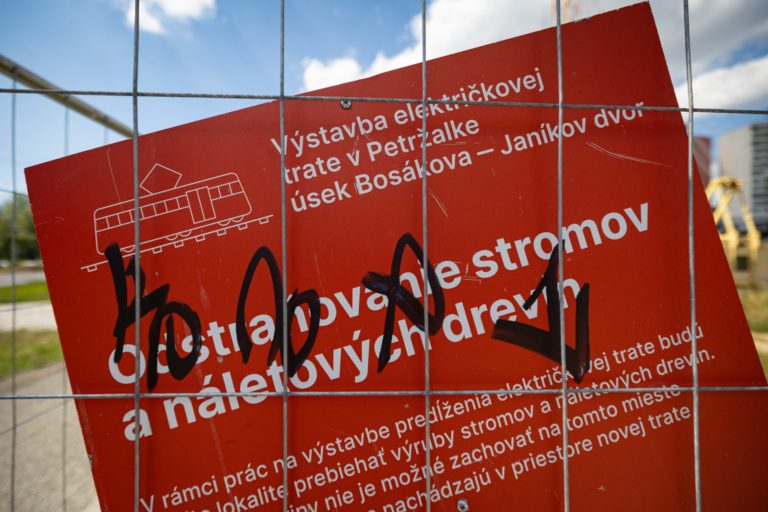 Pozastavené stavebné práce na Nosnom systéme Mestskej hromadnej dopravy (MHD) na úseku Bosákova ulica - Janíkov dvor v bratislavskej Petržalke. Bratislava, 9. august 2022. Foto: SITA/Jana Birošová