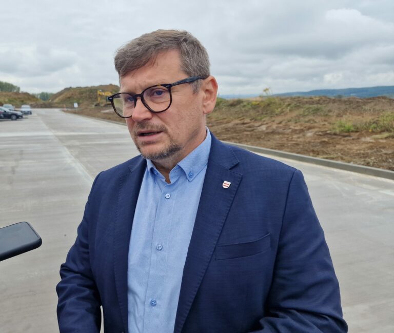 Primátor mesta Prešov František Oľha pri začiatku výstavby nového závodu spoločnosti Dejong v Prešove. Prešov, 3. októbra 2024. Foto: SITA/Ivan Kriššák