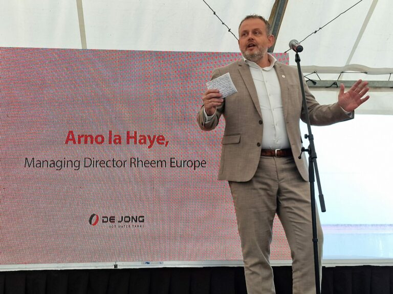 Výkonný riaditeľ Rheem Europe Arno La Haye pri slávnostnom začiatku výstavby nového závodu spoločnosti Dejong v Prešove. Prešov, 3. októbra 2024. Foto: SITA/Ivan Kriššák