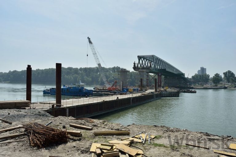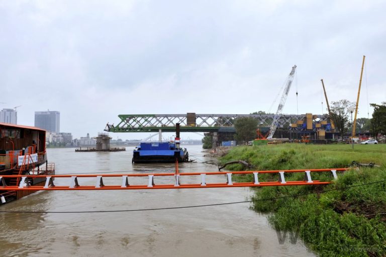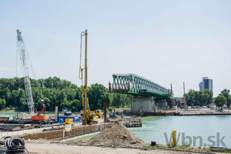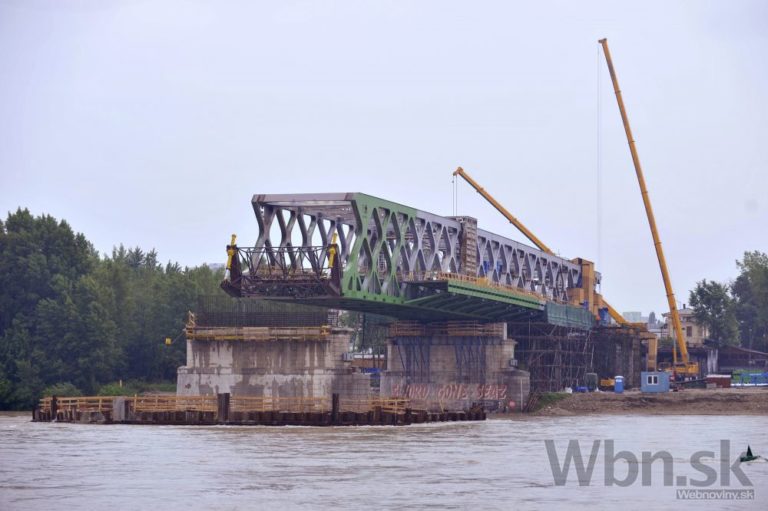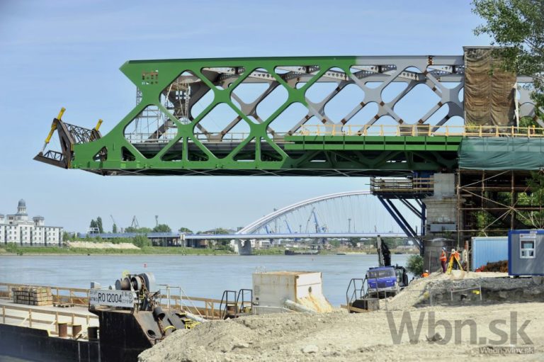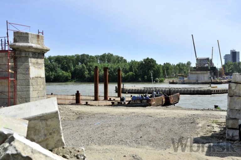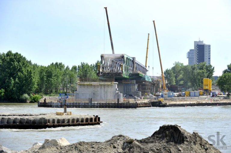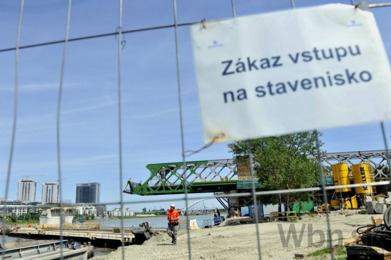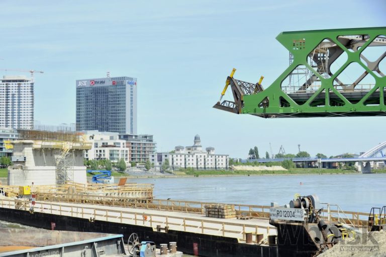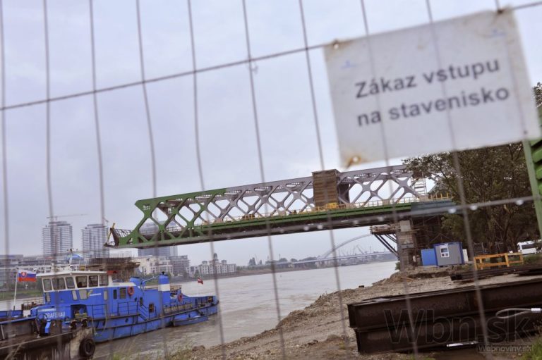 Pohľad na prípravy na výsuv konštrukcie na Starom moste. Bratislava, 28. august 2015. Foto: SITA/Robert Tappert