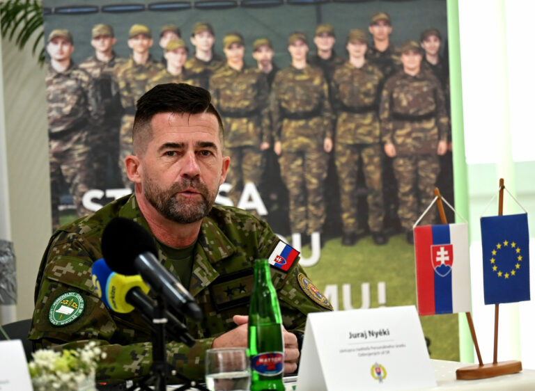 Generálny tajomník služobného úradu Ministerstva obrany SR Peter Krajčírovič počas tlačovej konferencie Ministerstva obrany Slovenskej republiky a Košického samosprávneho kraja (KSK) na tému: Vznik prvej vojenskej triedy na strednej škole v Sečovciach. Sečovce,15. január 2025. Foto: SITA/Viktor Zamborský