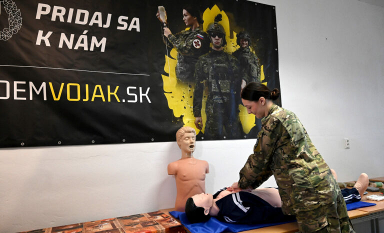 Poskytovanie prvej pomoci počas prípravy študentov Spojenej školy v Sečovciach na budúce povolanie v Ozbrojených silách Slovenskej republiky. Sečovce, 15. január 2025. Foto: SITA/Viktor Zamborský.
