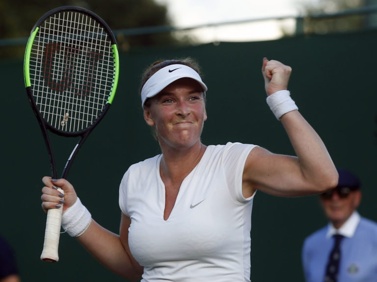 Johanna Kontová oslavuje v prvom kole Wimbledonu výhru nad Taiwančankou Su-Wei Hsieh, skóre zápasu: 6:2, 6:2. Foto: SITA/AP
