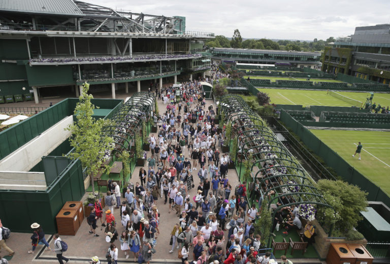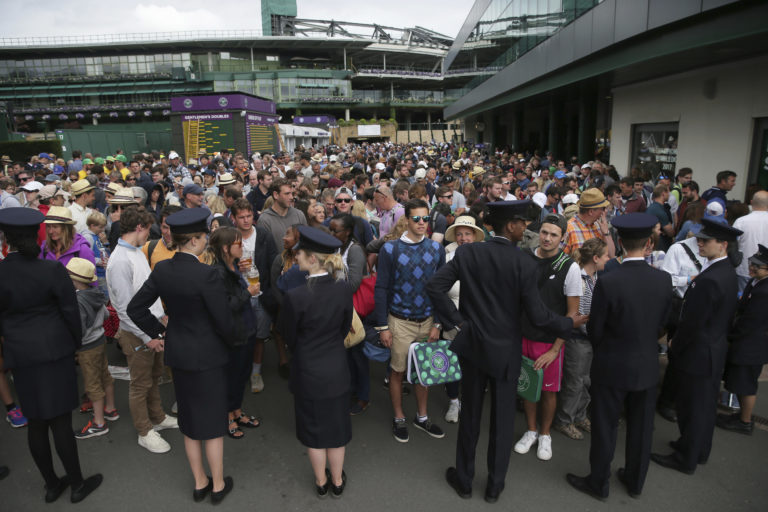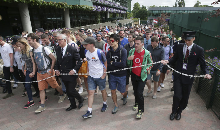 Diváci počas úvodného dňa Wimbledonu. Londýn, 3. júl 2017. Foto: SITA/AP.