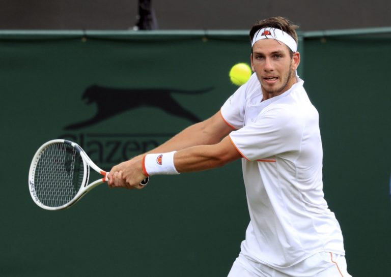 Britský tenista Cameron Norrie v zápase 1. kola Wimbledonu, v ktorom prehral s Francúzom Jo-Wilfried Tsongom 3:6, 2:6, 2:6. Londýn, 3. júl 2017. Foto: SITA/AP