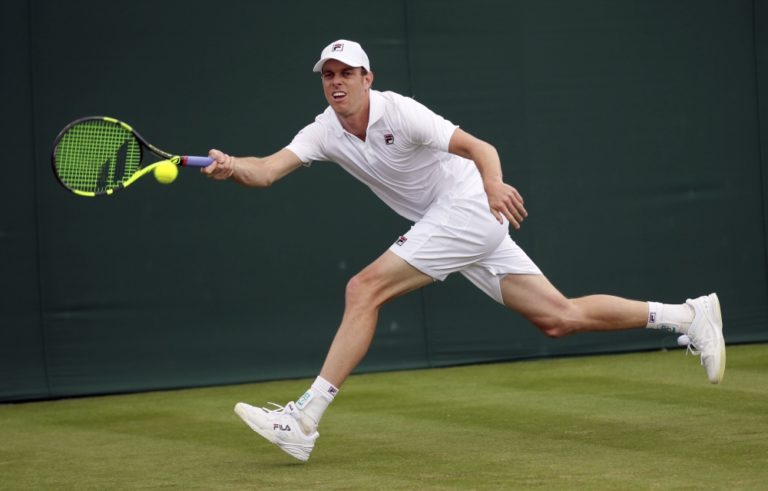 Anerický tenista Sam Querrey počas zápasu 1. kola Wimbledonu, v ktorom zdolal Taliana Thomasa Fabbiana. Londýn, 3. júl 2017. Foto: SITA/AP