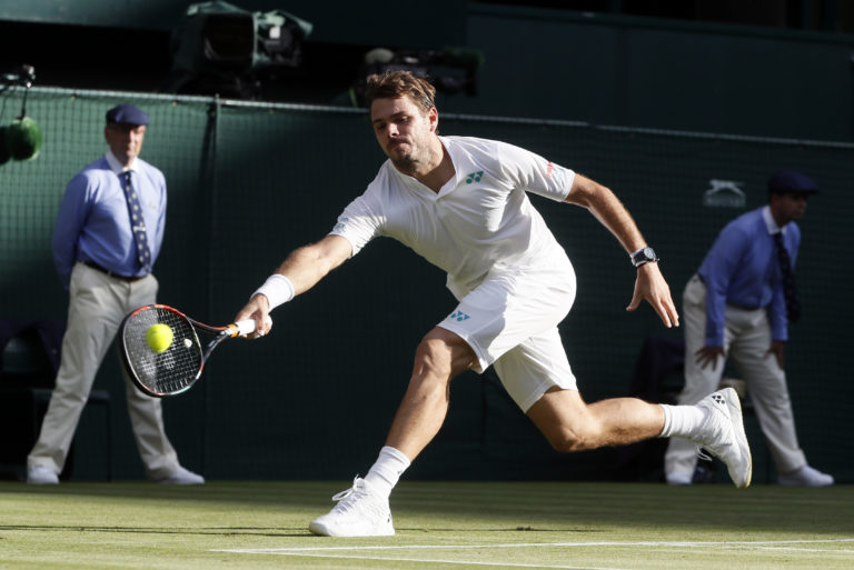 Švajčiar Stan Wawrinka v 1. kole Wimbledonu v súboji proni Daniilovi Medvedevovi, nad ktorým prehral 6:4, 3:6, 6:4, 6:1. Foto: SITA/AP
