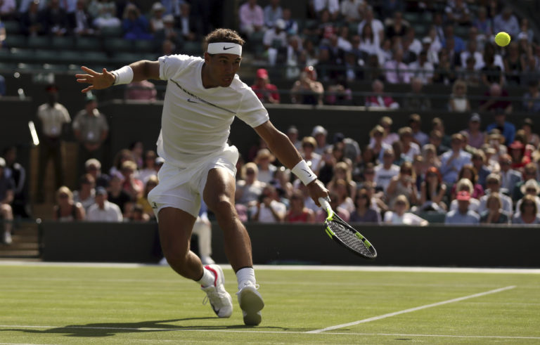 Španielsky tenista Rafael Nadal v zápase 1. kola Wimbledonu proti Austrálčanovi Johnovi Millmanovi, ktorého porazil 6:1, 6:3, 6:2. Foto: SITA/AP
