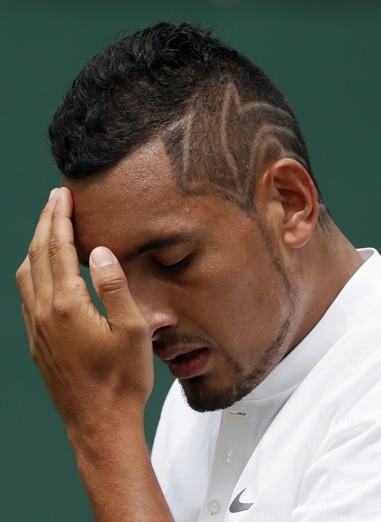 Austrálsky tenista Nick Kyrgios počas zápasu 1. kola na Wimbledone proti Francúzovi Pierrovi-Huguesovi Hebertovi. Londýn, 3. júl 2017. Foto: SITA/AP.