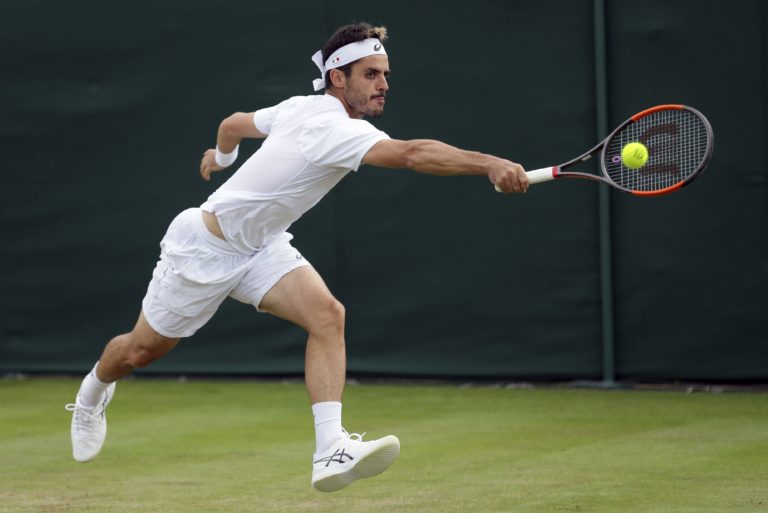 Taliansky tenista Thomas Fabbiano počas zápasu 1. kola WImbledonu proti Američanovi Samovi Querreymu. Londýn, 3. júl 2017. Foto: SITA/AP.