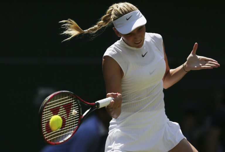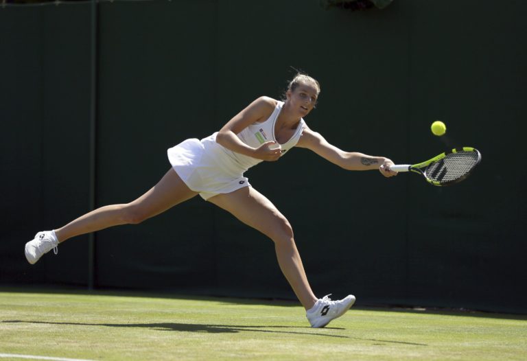 Chorvátska tenistka Donna Vekičová počas zápasu 2. kola Wimbledonu, v ktorom podľahla Britke Johanne Kontovej 6:7 (4), 6:4, 8:10. Londýn, 5. júla 2017. Foto: SITA/AP.