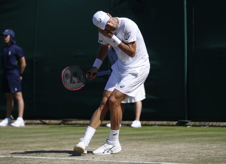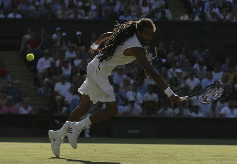 Nemecký tenista Dustin Brown počas zápasu 2. kola Wimbledonu, v ktorom prehral s Britom Andym Murraym 3:6, 2:6, 2:6. Londýn, 5. júl 2017. Foto: SITA/AP.