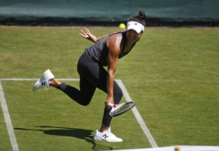 Britská tenistka Heather Watsonová počas zápasu 2. kola Wimbledonu, v ktorom zdolala Lotyšku Anastasiju Sevastovovú 6:0, 6:4. Londýn, 5. júla 2017. Foto: SITA/AP.