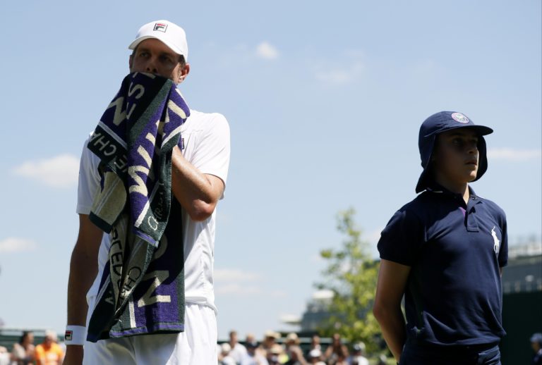 Americký tenista Sam Querrey počas zápasu 2. kola Wimbledonu, v ktorom zdolal Nikoloza Basilašviliho z Gruzínska 6:4, 4:6, 6:3, 6:3. Londýn, 5. júl 2017. Foto: SITA/AP.
