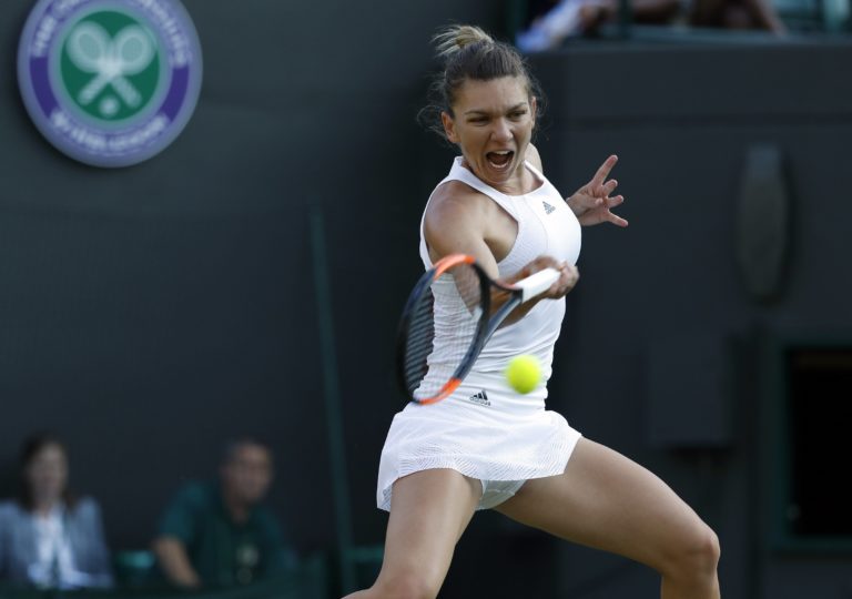 Rumunská tenistka Simona Halepová počas zápasu 2. kola Wimbledonu, v ktorom zdolala Brazílčanku Beatriz Haddadovú-Maiovú 7:5, 6:3. Londýn, 5. júl 2017. Foto: SITA/AP.