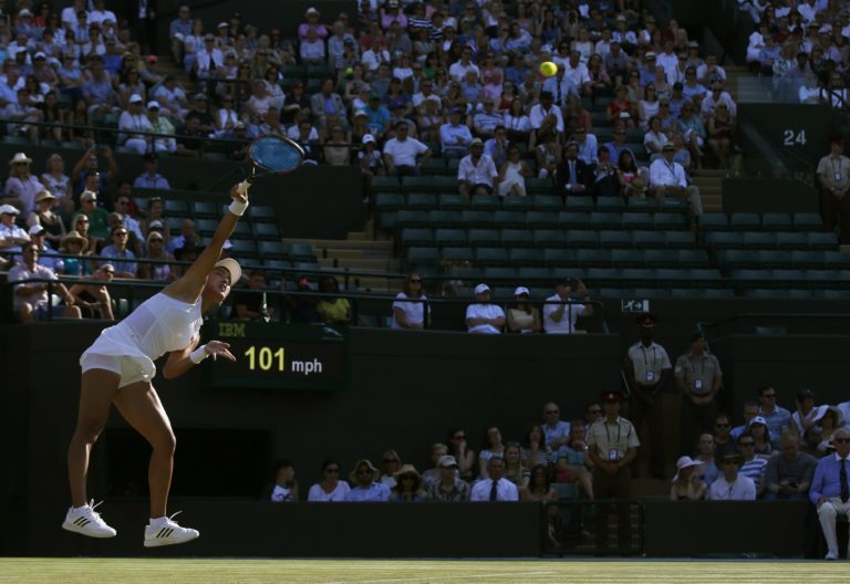 Česká tenistka Kristýna Plíšková počas zápasu 2. kola Wimbledonu, v ktorom podľahla Grékyni Marii Sakariovej 7:6 (6), 4:6, 4:6. Londýn, 5. júla 2017. Foto: SITA/AP.