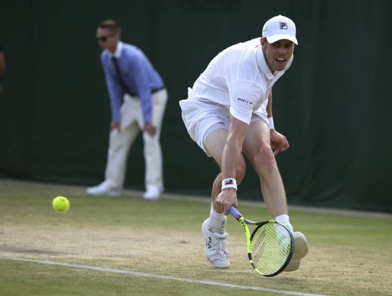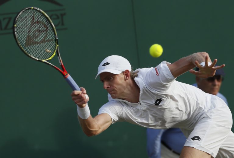 Američan Sam Querrey v zápase 3. kola Wimbledonu proti Jo—Wilfried Tsonga z Francúzska. 7. júl 2017 Foto: SITA/AP