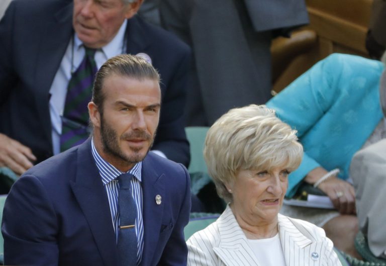 Bývalý futbalista David Beckham v hľadisku počas zápasu 3. kola Wimbledonu. Londýn, 7. júl 2017. Foto: SITA/AP.
