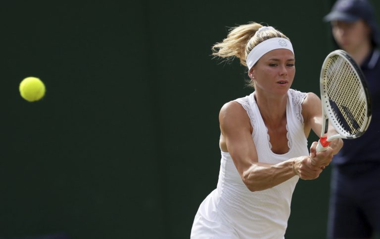 Talianska tenistka Camila Giorgi v zápase 3. kola Wimbledonu proti Litovčanke Jelene Ostapenkovej. Foto: SITA/AP