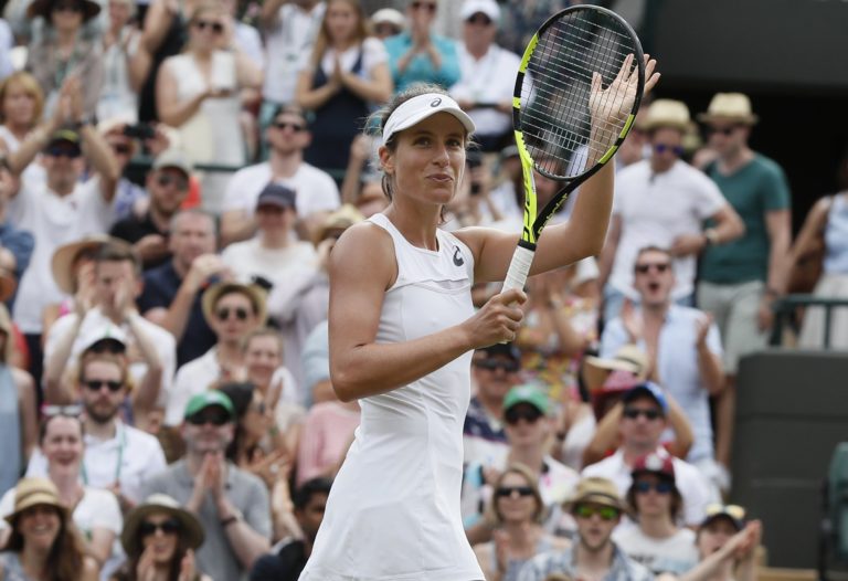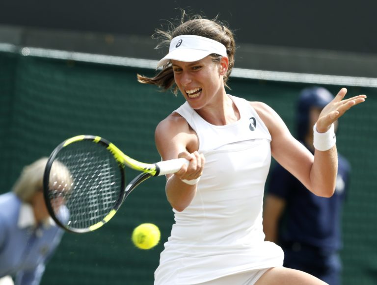 Britská tenistka Johanna Konta v zápase 3. kola Wimbledonu proti Grékyni Marii Sakkariovej. 7. júl 2017 Foto: SITA/AP