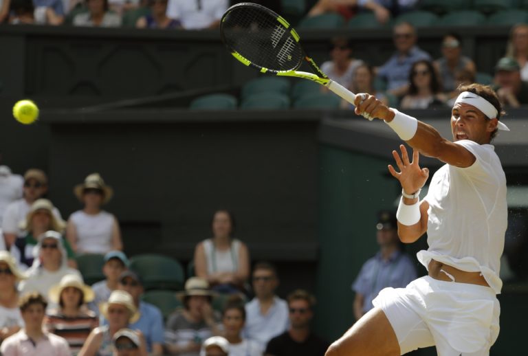 Španiel Rafael NAdal v zápase 3. kola Wimbledonu proti Rusovi Karenovi Chačanovi. 7. júl 2017 Foto: SITA/AP