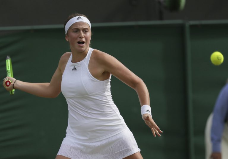Litovčanka Jelena Ostapenkova v zápase 3. kola Wimbledonu proti Talianke Camile Giorgiovej.7. júl 2017 Foto: SITA/AP