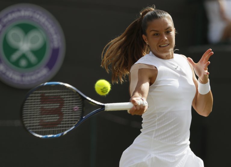 Grékyňa Maria Sakkariová v zápase 3. kola Wimbledonu proti Britke Johanne Kontovej. 7. júl 2017 Foto: SITA/AP