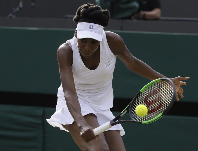 Američanka Venus Wiliamsová v zápase 3. kola Wimbledonu proti Japonke Naomi Osakovej. 7. júl 2017 Foto: SITA/AP