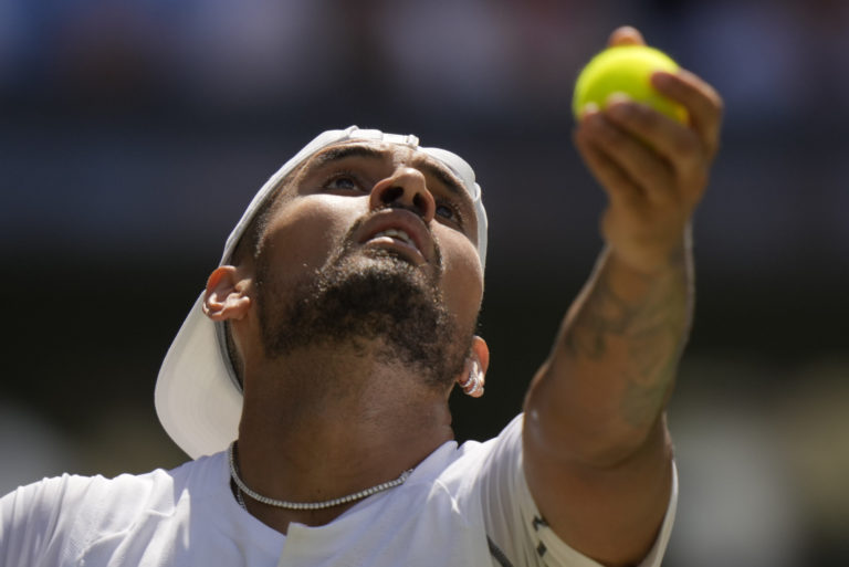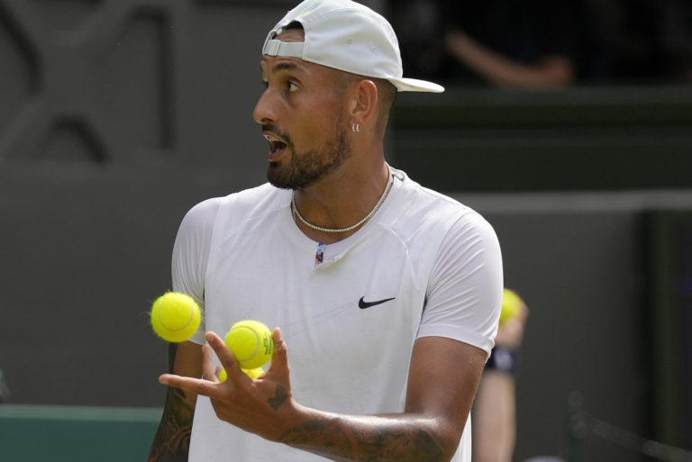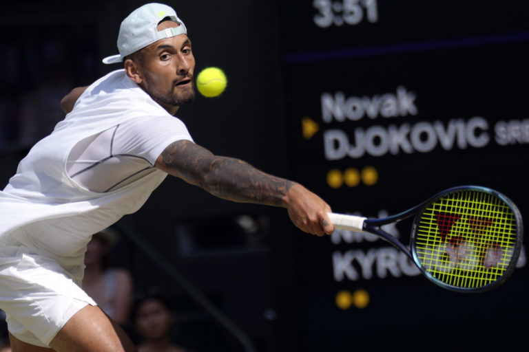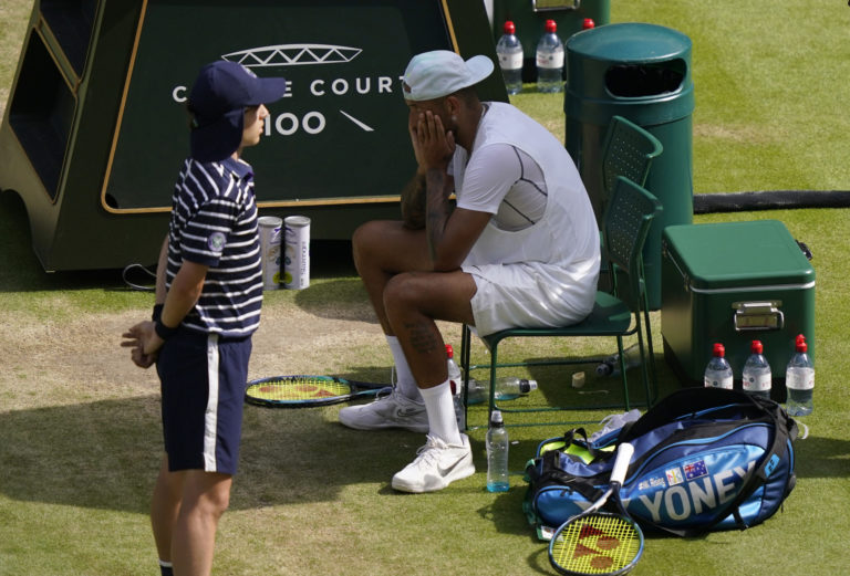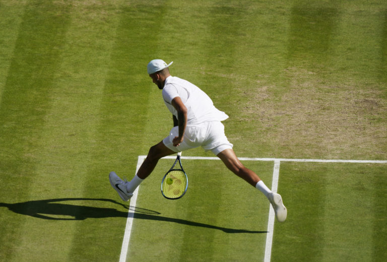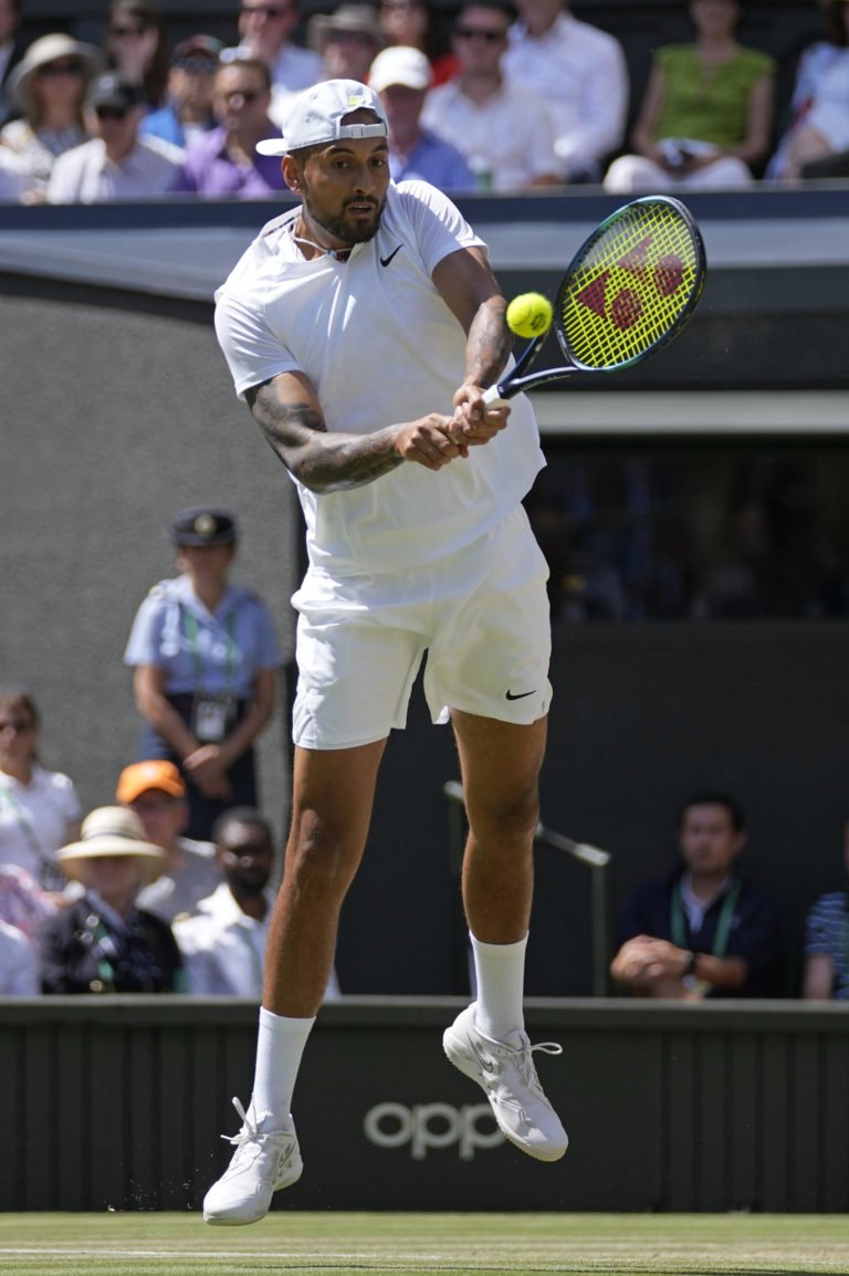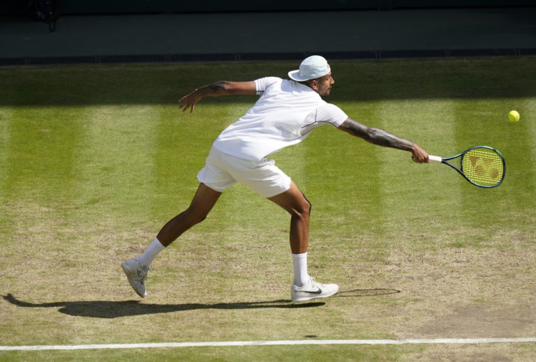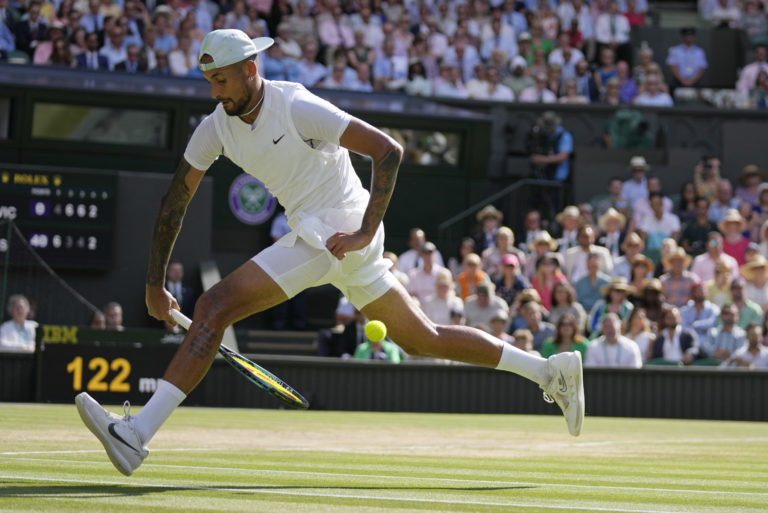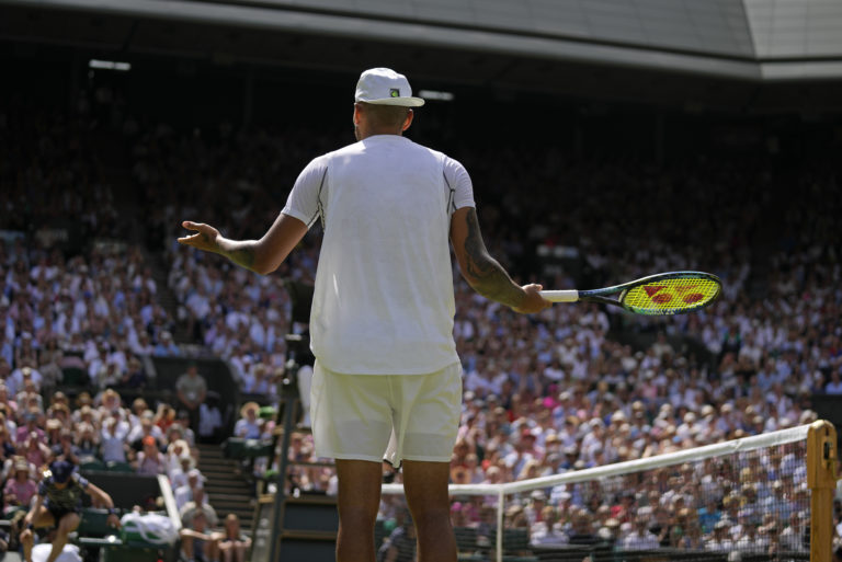 Austrálsky tenista Nick Kyrgios počas finále Wimbledonu 2022 proti Srbovi Novakovi Djokovičovi. Londýn, 10. júl 2022. Foto: SITA/AP.