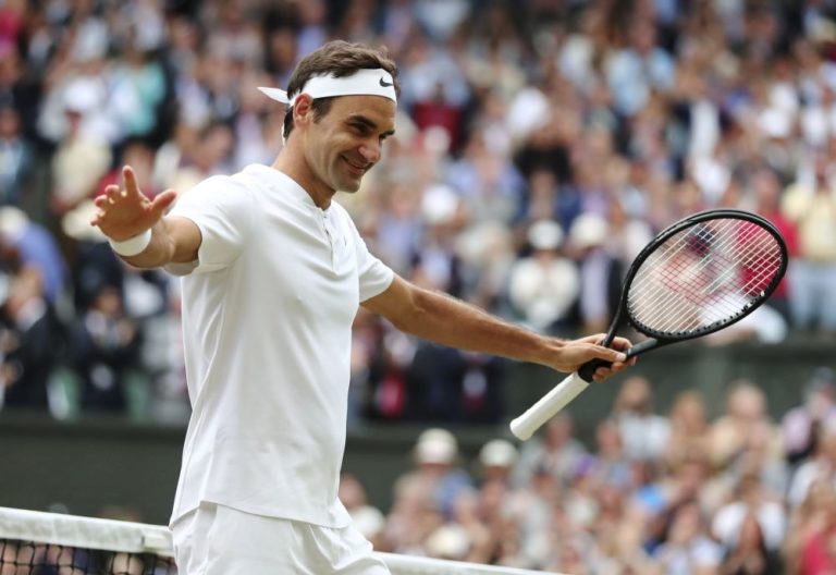 Švajčiar Roger Federer počas semifinále Wimbledonu, v ktorom zdolal Čecha Tomáša Berdycha 7:6, 7:6, 6:4.