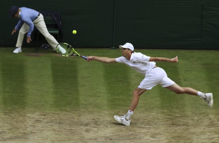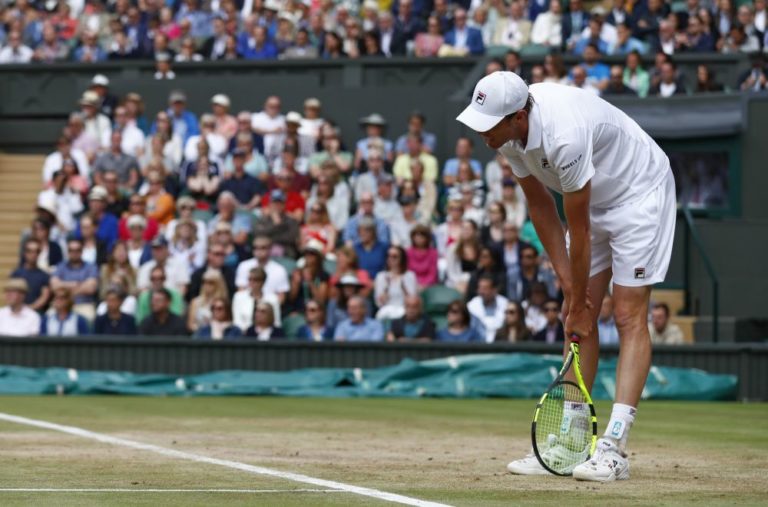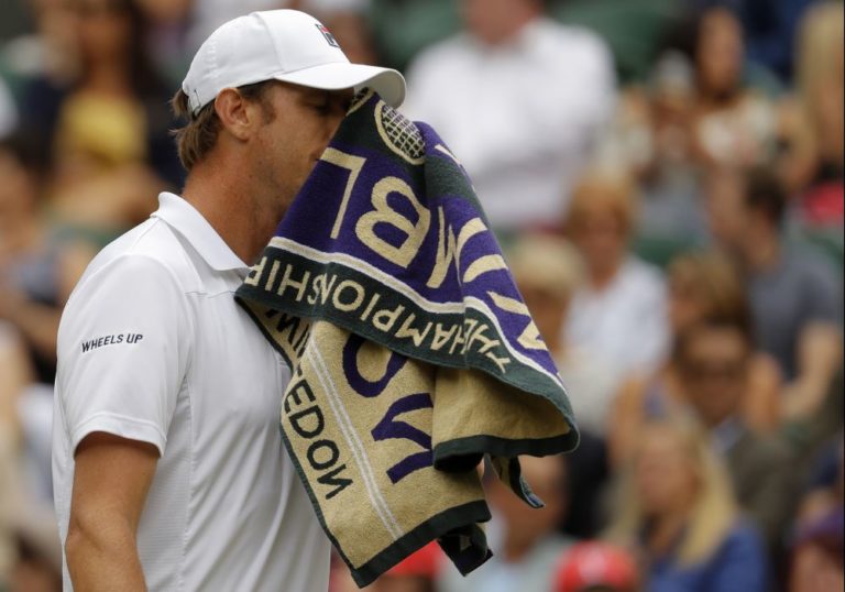 Americký tenista Sam Querrey počas zápasu semifinále Wimbledonu, v ktorom podľahol Chorvátovi Marinovi Čiličovi 7:6, 4:6, 6:7, 5:7. Foto: SITA/AP