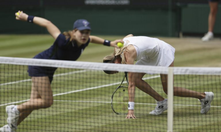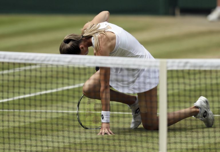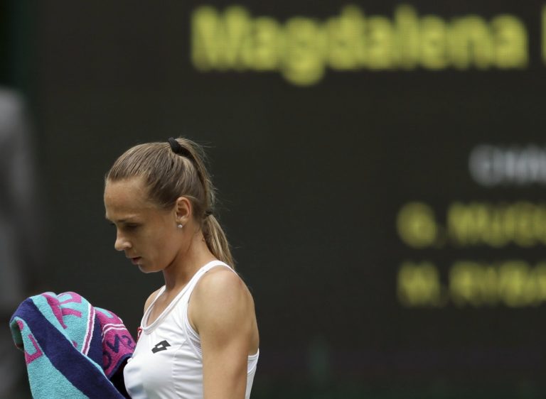 Slovenská tenistka Magdaléna Rybáriková počas semifinálového zápasu na Wimbledone proti Španielke Garbine Muguruzovej-Blancovej. Londýn, 13. júl 2017. Foto: SITA/AP.